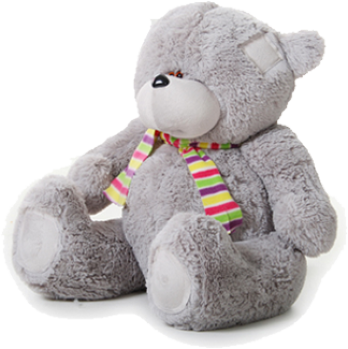 Немного грустный и очень мягкий медвежонок со стильным разно- цветным шарфом не только у ребенка вызовет умиление и желание потрогать и прижать его к себе. Эта игрушка изготовлена из гипо- аллергенного материала приятного нежно-серого цвета.